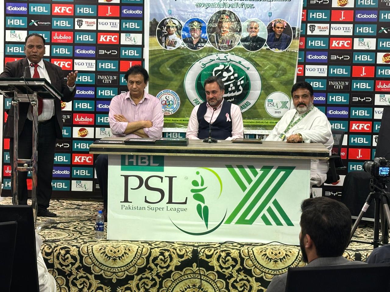 سینئر سپورٹس جرنلسٹ عبدالمحئی شاہ نے کہا کہ پاکستان میں انٹرنیشنل کرکٹ کے کامیاب انعقاد پر تمام سیکورٹی فورسز کے مشکور ہیں , چئیرمین رسجا شکیل احمد اعوان نے کہا کہ معرکہ حق کے ”آپریشن بنیان مرصوص” بھارت کو دندان شکن جواب دے ثابت کیا ہے افواج پاکستان دنیا کی بہترین فوج ھےانہوں نے کہا کہ ہنود و یہود کے گٹھ جوڑ کو اتحاد کی طاقت سے شکست دی پاکستان میں کرکٹ کی بحالی سے ثابت ہوا پاکستان کرکٹ سے پیار کرنے والوں کا ملک ھے