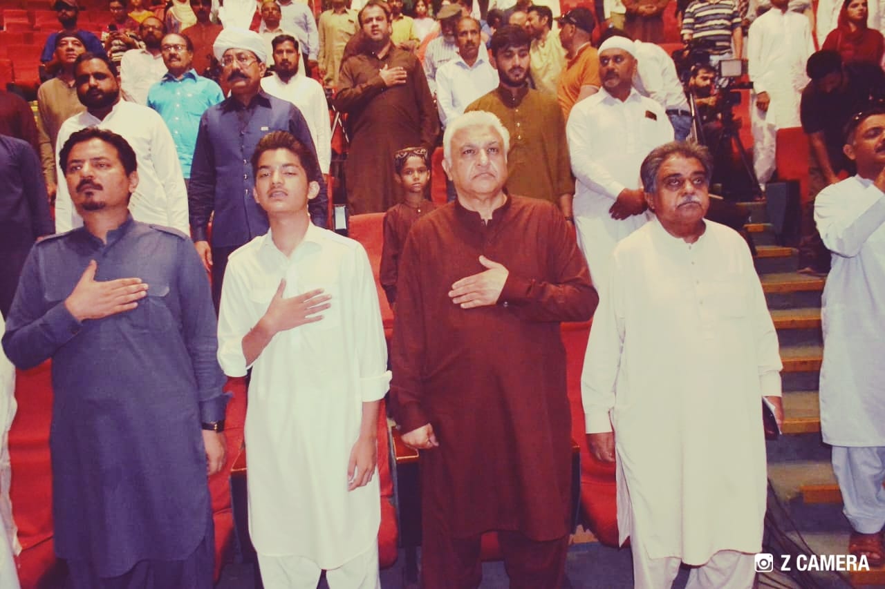 لاہور (سہ پہر) ایشین کلچرل ایسوسی ایشن آف پاکستان اور لاہور آرٹس کونسل الحمراء کے زیر اہتمام پاکستان آرمڈ فورس اور عزت سادات فیلڈ مارشل جنرل سید عاصم منیر کو خراج تحسین پیش کرنے کیلئے ملی ترانوں اور قومی نغمات کے ساتھ ساتھ ورسٹائل پرفارمنس گروپ کے سربراہ محمد فیاض کی زیر نگرانی و ہدایات چاروں صوبوں ، کشمیر کی ثقافت اور قومی نغمہ پر پروقار پرفارمنس پیش کی گئی – تقریب کی کمپئیر نگ کے فرائض معروف ٹی وی اینکر گوہر شمس نے بڑے احسن انداز میں کی – تقریب کا باقاعدہ آغاز تلاوت کلام پاک اور نعت رسول مقبول صلی اللہ علیہ وآلہ وسلم سے کیا گیا – اسکے بعد قومی ترانہ پیش کیا گیا جس کے احترام میں تمام شرکاء، فنکاروں اور ہر مکتبہ فکر کے افراد وشخصیات احترام میں کھڑے ہو گئے – ہال پاکستان زندہ باد اور پاک فوج پائندہ باد کے نعروں سے گونج اٹھا –