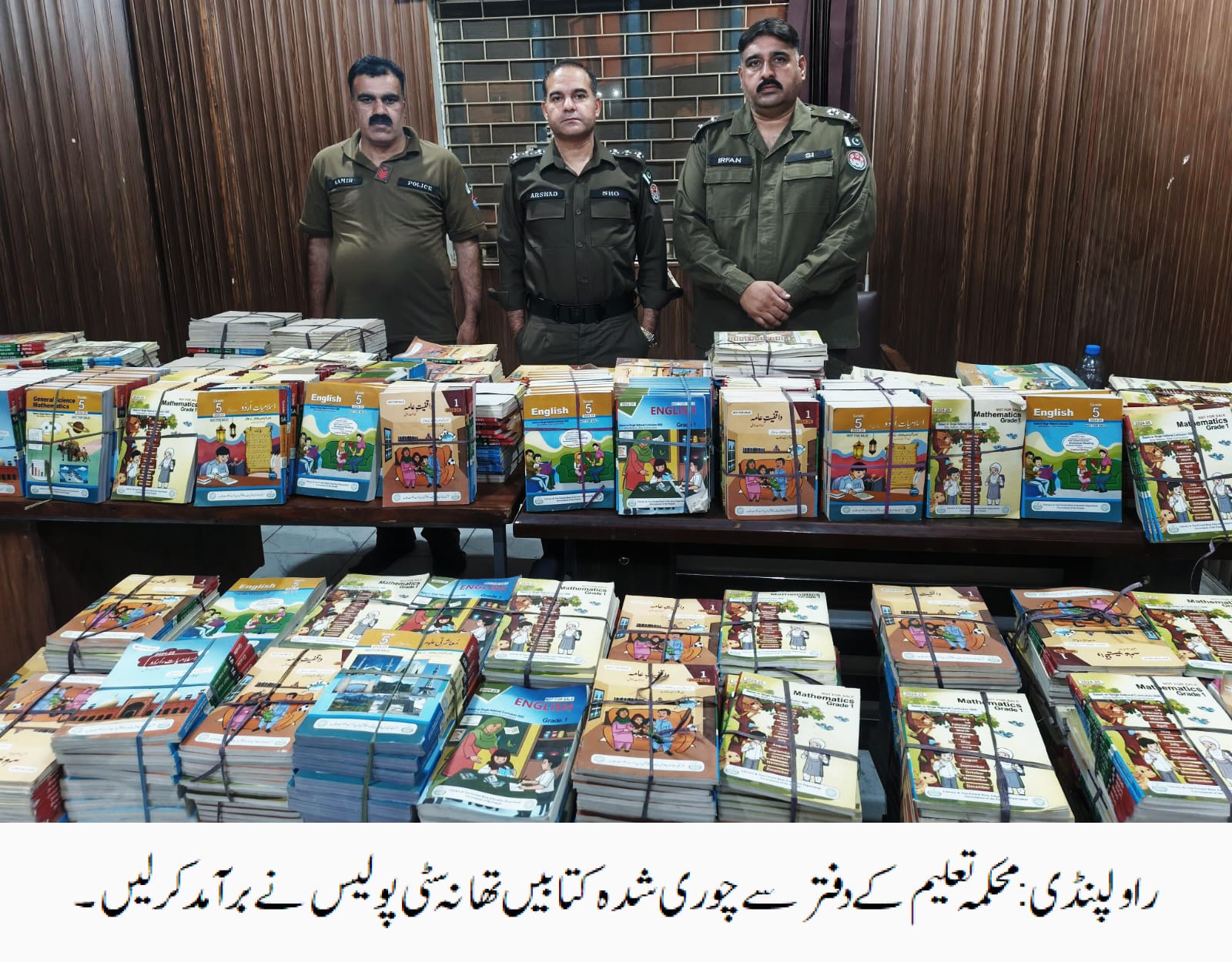 راولپنڈی (سہ پہر)(مظہر شاہ)تھانہ سٹی پولیس ٹیم کی اہم کارروائی، محکمہ تعلیم کے دفتر سے 9600 سے زائد کتابیں چوری کرنے والے دو افراد گرفتار، لاکھوں روپے مالیتی 9665 کتابیں برآمد۔ تفصیلات کے مطابق تھانہ سٹی پولیس نے کارروائی کرتے ہوئے محکمہ تعلیم کے دفتر سے 9600 سے زائد کتابیں چوری کرنے والے دو افراد کو حراست میں لے لیا، زیر حراست افراد سے لاکھوں روپے مالیتی 9665 کتابیں برآمد ہوئیں، کتابیں حکومت پنجاب کی جانب سے طلبا و طالبات کے لئے پرنٹ کروائی گئیں تھیں، کتابیں مختلف سکولوں میں پرائمری کے طلبا و طالبات کو مہیا کی جانی تھیں، چوری کی اطلاع پر سی پی او سید خالد ہمدانی نے نوٹس لیتے ہوئے ملوث ملزمان کی گرفتاری اور کتب کی فوری برآمدگی کا حکم دیا تھا، تھانہ سٹی پولیس نے ٹیکنیکل ذرائع اور ہیومن انٹیلی جنس کی مدد سے ملوث افراد کو گرفتار کر کے تمام مسروقہ کتب برآمد کر لیں، ملزمان کے ساتھیوں و سہولتکاروں کو بھی گرفتار کیا جائے گا، زیر حراست افراد کو ٹھوس شواہد کے ساتھ چالان کر کے قرار واقعی سزا دلوائی جائے گی۔