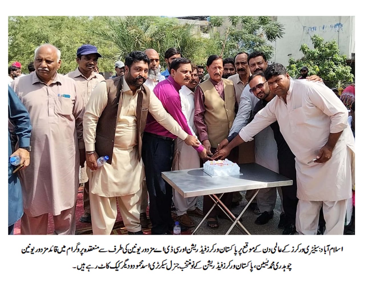 اسلام آباد (سہ پہر)سینیٹری ورکرزکے عالمی دن کے موقع پر پاکستان ورکرزفیڈریشن اور سی ڈی اے مزدور یونین کے زیر اہتمام سنیٹری ورکرزکی خدمات کو خراج تحسین پیش کرنے کے لیے پروگرام منعقدکیا گیا