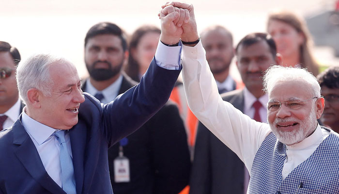 میڈیا رپورٹ کے مطابق بھارت اسرائیل کی جانب سے ایران پر حملہ کی طرح کا ماڈل اپنانا چاہتا ہے تاکہ جارحیت کا جواز پیدا کیا جاسکے، اپنے مذموم عزائم کیلئے بھارت مسلسل جدید اسلحہ اور ہتھیار خرید رہا ہے۔
