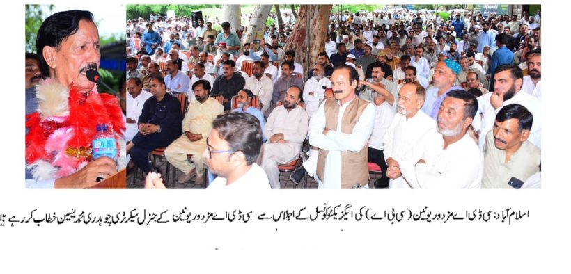 سی ڈی اے مزدور یونین (سی بی اے) کی ایگزیکٹوکونسل کااجلاس،سی بی اے کمیٹیز کے نمائندگان اور ملازمین نے کثیر تعدادمیں شرکت۔