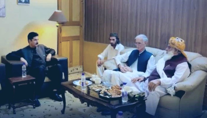 خیبر پختون خواہ (سہ پہر) میں گزشتہ چند دنوں سے خیبر پختون خواہ میں ہوں اس دوران پشاور میں مولانا فضل الرحمٰن کے جمعیت علمائے اسلام (جے یو آئی) ف فاٹا کے زیرِ اہتمام گرینڈ قبائل جرگے میں نے شرکت کی اور گورنر ہاؤس کا بھی دورہ کیا اور کے پی کے میں سیاسی تبدیلیوں کے بارے میں ان سے بات کی۔ جس میں سیاسی تبدیلی کےامکان کا اظہار کیا جا رہا ہے۔ گورنر خیبرپختونخوا فیصل کریم کنڈی نے کہا کہ میں صوبائی حکومت کو آفر کرتا ہوں کہ 11 سنیٹرز میں سے 5 ہمیں دے دیں 6 خود لے لیں، ورنہ 35 آزاد ایم پی ایز ہیں ہم ان سے بات چیت کر کےاپنا جنرل سنیٹر نکالنے کی کوشش کریں گے خیبرپختونخوا کی سیاست میں بڑی تبدیلی کی بازگشت، صوبے کی اپوزیشن جماعتوں کی اہم مشاورت حتمی مرحلے میں داخل ہو گئی ہے۔ گورنر خیبرپختونخوا فیصل کریم کنڈی، وفاقی وزیر امیر مقام، وزیراعظم کے مشیر پرویز خٹک اور جے یو آئی کے سربراہ مولانا فضل الرحمان کے درمیان غیر رسمی ملاقات ہوئی۔یہ ملاقات پرویز خٹک کی رہائش گاہ پر ان کی ہمشیرہ کے انتقال پر تعزیت کے بعد ہوئی، جس میں صوبائی سیاسی صورتحال، ضم شدہ اضلاع کے مسائل اور امن و امان کی صورتحال پر تفصیلی گفتگو کی گئی۔ اپوزیشن قیادت نے آئندہ سینیٹ انتخابات میں مشترکہ حکمت عملی اپنانے اور متحدہ لائحہ عمل کے تحت الیکشن لڑنے کا اصولی فیصلہ کرلیا ہے۔ ملاقات میں ضم شدہ اضلاع میں بدامنی، عوامی تشویش اور وزیراعظم کی جانب سے قائم کمیٹی کے کردار پر بھی تبادلہ خیال کیا گیا۔