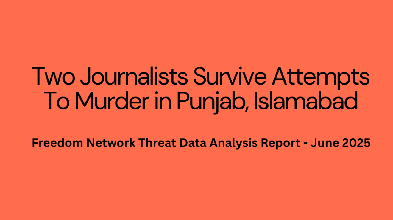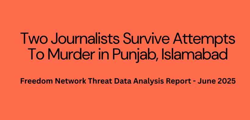 Islamabad (Sapeher Times) Two journalists faced attempts to murder while 10 others experienced other cases, including arrest, detention, legal action, censorship, attack on property and threat of harm, during June 2025 across Pakistan.