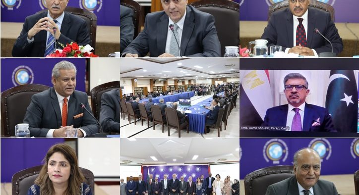 July 16, 2025 (Sapeher Times) The Centre for Afghanistan, Middle East and Africa (CAMEA) at the Institute of Strategic Studies Islamabad (ISSI), in collaboration with the Ministry of Foreign Affairs and the Pakistan Africa Institute for Development and Research (PAIDAR), organized an event to commemorate Egypt’s ‘Revolution Day’. The proceedings, which began with the national anthems of Pakistan and Egypt, were moderated by Ms. Amina Khan, Director CAMEA. Speakers included Ambassador Sohail Mahmood, Director General ISSI; Dr. Ihab Abdelhamid Hassan, Ambassador of Egypt to Pakistan; Mr. Aamir Shouket, Ambassador of Pakistan to Egypt; and Ambassador Khalid Mahmood, Chairman BOG ISSI. The Chief Guest on the occasion was Mr. Mushahid Hussain Sayed, President PAIDAR, and the Keynote Speaker was Ambassador Hamid Asghar Khan, Additional Secretary (Africa), Ministry of Foreign Affairs Pakistan (MOFA).