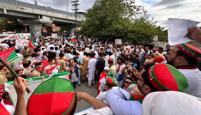 پشاور (سہ پہر) سینیٹ ٹکٹوں کی تقسیم پر پی ٹی آئی کارکنان کا حتجاج، قیادت پر منظور نظر افراد کو نوازنے کا الزام