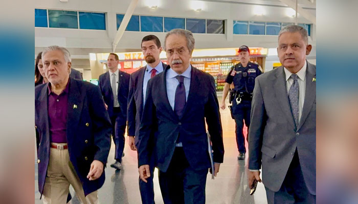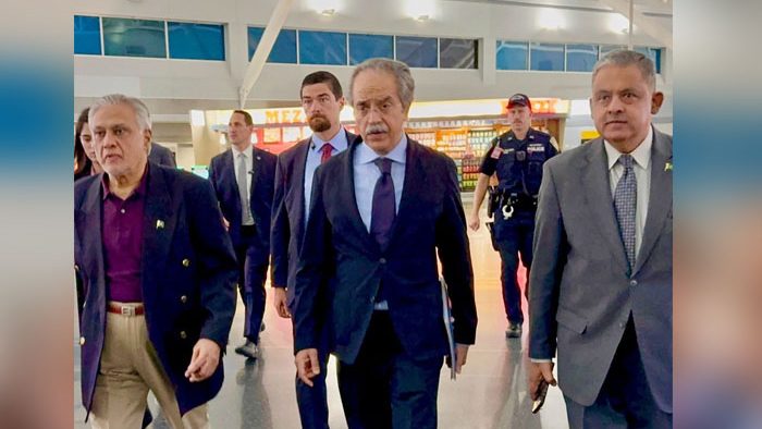 نائب وزیراعظم کی نیویارک آمد پر اقوامِ متحدہ میں پاکستان کے مستقل مندوب عاصم افتخار احمد اور امریکا میں پاکستانی سفیر رضوان سعید شیخ نے استقبال کیا۔