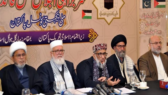 اسلام آباد (سہ پہر) حکومت نے اسرائیل کو تسلیم کرنے کی کوشش کی تو سخت مزاحمت کرینگے ، ملی یکجہتی کونسل