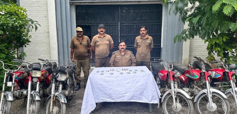 گینگ سے 6 مسروقہ موٹر سائیکل، مسروقہ رقم 12 ہزار روپے اور اسلحہ برآمد،