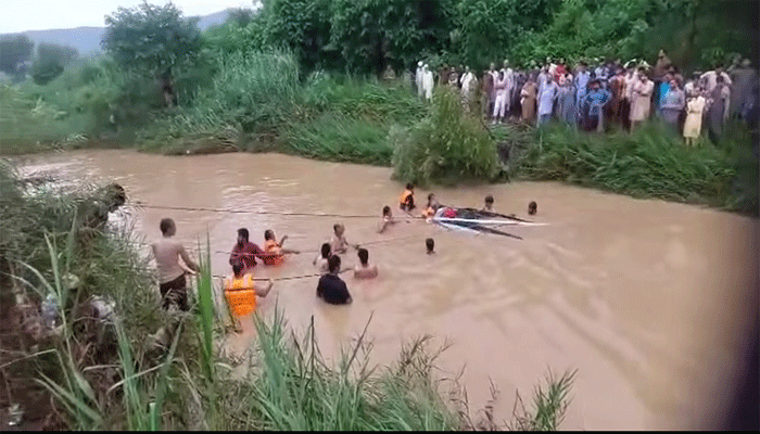 بعدازاں ریسکیو اینڈ سرچ آپریشن کے دوران بہہ جانے والی 4 خواتین کی نعشیں نکال لی گئی ہیں، جبکہ بچے کی تلاش کیلئے آپریشن جاری ہے۔