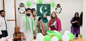 KARACHI (Sapeher Times) Karachi A vibrant Independence Day ceremony was held today at the Plastic Surgery Ward 24 of Jinnah Postgraduate Medical Center (JPMC) Karachi; where doctors, nursing staff and other staff of the ward participated in the ceremony. Pakistan’s Independence Day was celebrated with great enthusiasm and enthusiasm with green and white balloons, national flags and attractive decorations. A cake was also cut on the occasion and prayers were offered for the prosperity and development of the dear homeland.