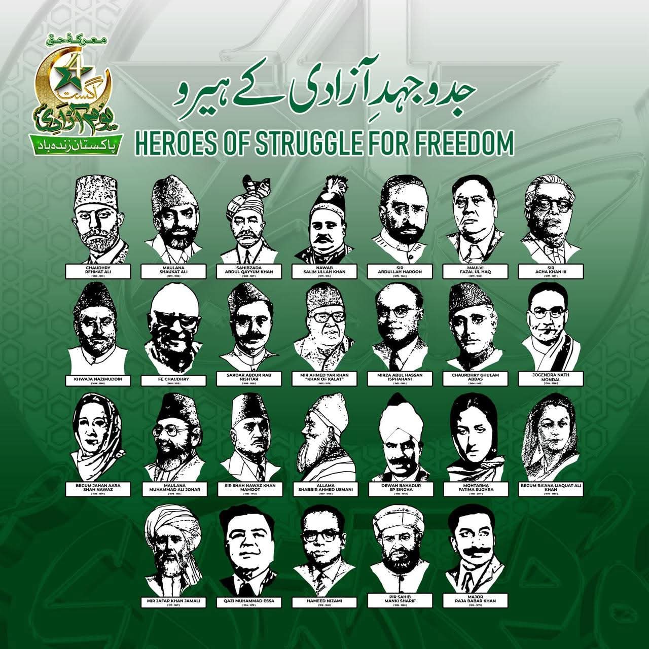 آزادی کے یہ ہیروز، جنہوں نے جدو جہد اور قربانیوں کے ذریعے ہمیں پاکستان جیسا عظیم وطن عطا کیا، ہم سب کے لیے مشعل راہ ہیں۔
