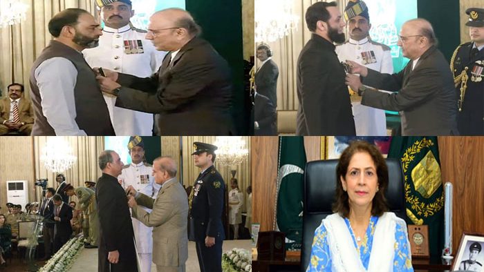 اسلام آباد (سہ پہر) وفاقی وزیر عطا اللہ تارڑ کونشان امتیاز ،سیکرٹری اطلاعات عنبرین جان ،مبشر حسن اور ارشد محمود ملک کو ستارہ امتیاز عطا