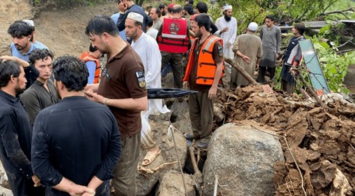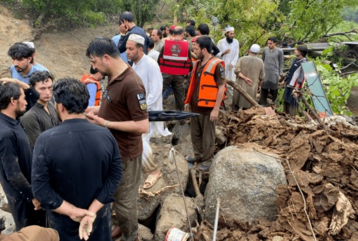 ریسکیو ٹیمیں بھاری مشینری کے ذریعے امدادی کاروائیوں میں مصروف ہیں، فرنٹیئر کور نارتھ نے ہیلی کاپٹر کے ذریعے متاثرین کے لیے خیمے اور دیگر ضروری سامان پہنچایا۔دریں اثنا، حادثے میں جاں بحق ہونے والوں کی نماز جنازہ ادا کردی گئی، جس میں رکن صوبائی اسمبلی انورزیب خان،ڈپٹی کمشنرشاہد علی،اسسٹنٹ کمشنر خار ڈاکٹر صادق علی، قبائلی عمائدین اور مقامی لوگوں نے شرکت کی۔ باجوڑ کی تحصیل سلارزئی کے علاقہ جبراڑئی میں کلاؤڈ برسٹ کے نتیجے میں ہونے والی طوفانی بارش کے بعد لینڈ سلائیڈنگ کے نتیجے میں بھاری پہاڑی پتھروں کی زد میں آکر 7 مکانات ملبے کا ڈھیر بن گئے، ملبے تلے دب کر 10 جاں بحق اور کئی لاپتہ ہوگئے وزیر اعلیٰ خیبر پختونخوا علی نے باجوڑ کی صورتحال کے حوالے سے ہدایات جاری کردیں، جس کے بعد ڈپٹی کمشنر باجوڑ اور ضلعی انتظامیہ کے دیگر حکام موقع پر پہنچ گئے ۔ وزیراعلیٰ نے ہدایت کی ہے کہ ریسکیو اور ریلیف کی کاروائیوں کیے تمام دستیاب وسائل بروئے کار لائے جائیں، کمشنر ملاکنڈ اور ڈپٹی کمشنر باجوڑ ریسکیو کاروائیوں کی خود نگرانی کریں، وزیراعلیٰ نے تمام ضلعی انتظامیہ خصوصا دیر اور سوات کی انتظامیہ کو الرٹ رہنے کی ہدایت کی انہوں نے کہا کہ ان اضلاع میں جاری بارشوں اور موسمی صورتحال کے پیش نظر انتظامیہ ہائی الرٹ رہے، کسی بھی ہنگامی صورتحال سے موثر انداز میں نمٹنے اور لوگوں کی جان و مال کی حفاظت کے لیے تمام پیشگی حفاظتی انتظامات یقینی بنائے جائیں۔بٹگرام اور مانسہرہ کے سرحدی گاؤں نیل بند میں بادل پھٹنے کا واقعہ جمعرات کی رات تقریباً 3 بجے پیش آیا، جس کے نتیجے میں 3 سے 4 گھر بہہ گئے۔ ڈپٹی کمشنر اشتیاق احمد کے مطابق باڈل پھٹنے سے مجموعی طور پر 21 افراد جاں بحق ہوئے، کلاوڈ برسٹ کا واقعہ ضلع مانسہرہ اور بٹگرام کے سرحدی علاقے ڈھیری حلیم میں پیش آیا، بہہ جانے والی 11 لاشیں نندی ہار خوڑ کے راستے بٹگرام کے شملائی علاقے میں برآمد ہوئیں جبکہ 10 لاپتہ افراد کی تلاش کے لیے آپریشن جاری ہے۔ ریسکیو 1122 بٹگرام کے مطابق ریسکیو حکام کو اطلاع ملی کہ گزشتہ رات یونین کونسل شملائی بٹگرام کے بالائی علاقوں میں بادل پھٹنے اور اچانک سیلاب کے باعث متاثرہ صورتحال پیدا ہوئی۔ متاثرہ دیہات میں وہ علاقے بھی شامل ہیں جو نیل بند، سارم اور ملکال گلی کے قریب واقع ہیں، جو بٹگرام اور مانسہرہ اضلاع کی سرحدی حدود میں آتے ہیں۔ ریسکیو 1122 بٹگرام کا سرچ اور ریسکیو آپریشن جاری ہے، تاہم وقفے وقفے سے بارش اور موبائل نیٹ ورک کی تقریباً مکمل بندش کے باعث مواصلاتی رابطے شدید متاثر ہیں، دھر مانسہرہ کے علاقے بسیاں میں گاڑی سیلابی ریلے میں بہہ گئی، ریسکیو1122کو اطلاع موصول ہوتے ہی غوطہ خور ٹیم فوری طور پر جائے حادثہ پر روانہ ہوئی۔ گاڑی میں 6 افراد سوار تھے جن میں سے 3 کو موقع پر زندہ بچا لیا گیا تاہم 2 افراد 30 سالہ میر اور 25 سالہ اسد جاں بحق ہوگئے جبکہ مانسہرہ میں بٹل پولیس اسٹیشن کی حدود میں واقع گاؤں ڈھیری حلیم میں 15 مکانات لینڈ سلائیڈنگ کی زد میں آکر تباہ ہوگئےجس کے نتیجے میں 35 افراد ملبے تلے دب گئے۔ دریں اثنا، دیر لوئر کے علاقے میدان سوری پاؤ میں مکان کی چھت گرنے سے بچوں اور خواتین سمیت کئی افراد ملبے تلے دب گئے ، ترجمان ریسکیو 1122 کے مطابق ریسکیو ٹیم شدید بارش، سیلابی ریلوں دشوار گزار اور خراب راستے کے باجود 3 گھنٹے کا راستہ پیدل طے کرتے ہوئے جائے وقوعہ پر پہنچ گئی۔ریسکیو 1122 اور مقامی لوگوں نے اب تک 7 افراد کو ملبے تلے سے نکالا، جن میں سے 5 افراد جاں بحق اور 2 زخمی ہوگئے۔ضلع شانگلہ کے ڈپٹی کمشنر کے دفتر سے جاری تفصیلات کے مطابق شدید بارش اور سیلاب کی وجہ سے ضلع میں 23 افراد جاں بحق اور 8 زخمی ہوئے ہیں۔ سیلاب سے سات گھر، ایک مسجد اور ایک اسکول بھی تباہ ہوا ہے۔سیلابی ریلے میں تین پل بہہ گئے جب کہ لینڈسلائیڈنگ کی وجہ سے سات شاہراہیں بند ہوگئیں جن میں سے دو کو کلیئر کردیا گیا ہے جبکہ باقی شاہراہوں کی بحالی پر کام جاری ہے۔سوات میں بھی طوفانی بارشوں کے باعث دریا اور ندیوں میں طغیا
