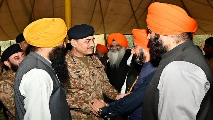 ISLAMABAD (Sapeher Times) Pak Army is on the frontline against the flood disasters to ensure the safety of lives and property of citizens. Rescue and relief activities of civil and military organizations are ongoing, On the other hand, Chief of Army Staff Field Marshal Syed Asim Munir visited the flood-affected areas of Punjab and reviewed the flood situation and ongoing relief and rescue operations, while the Pakistan Army’s rescue and relief operation is also underway in the flood-affected areas. According to ISPR, Field Marshal Syed Asim Munir visited the flood-affected areas of Punjab and reviewed the flood situation and ongoing relief and rescue operations in Sialkot sector, Shakargarh, Narowal and Kartarpur. On this occasion, he was received by Corps Commander Gujranwala. The Field Marshal was briefed about the current situation and the upcoming rains. He appreciated the joint efforts of the army and the civil administration. On this occasion, the Army Chief met the affected Sikh community and assured that all the religious places affected by the flood, including Darbar Sahib Kartarpur, will be fully restored on priority basis. The Field Marshal stressed that the protection of minorities and their religious places is the responsibility of the state and its institutions and Pakistan will leave no stone unturned in fulfilling this responsibility. The Sikh community thanked the Army Chief for the facilities provided by the civil administration and the army, and the Army Chief also conducted an aerial survey of Darbar Sahib Kartarpur.