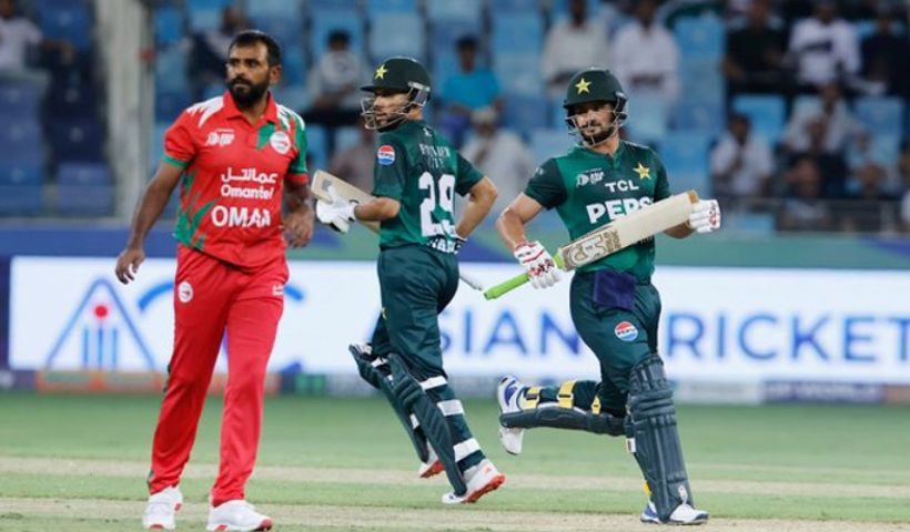 محمد حارث نے 66 رنز کی اننگز کھیلی، صاحبزادہ فرحان نے 29 رنز بنائے جبکہ فخر زمان نے 23رنز ناٹ آوٹ اسکور کیے۔صائم ایوب اور کپتان سلمان علی آغا صفر پر آٹ ہوئے، محمد نواز نے 19اور حسن نواز نے 9رنز اسکور کیے۔عمان کی جانب سے عامر کلیم اور شاہ فیصل نے 3،3 کھلاڑیوں کو آوٹ کیا۔