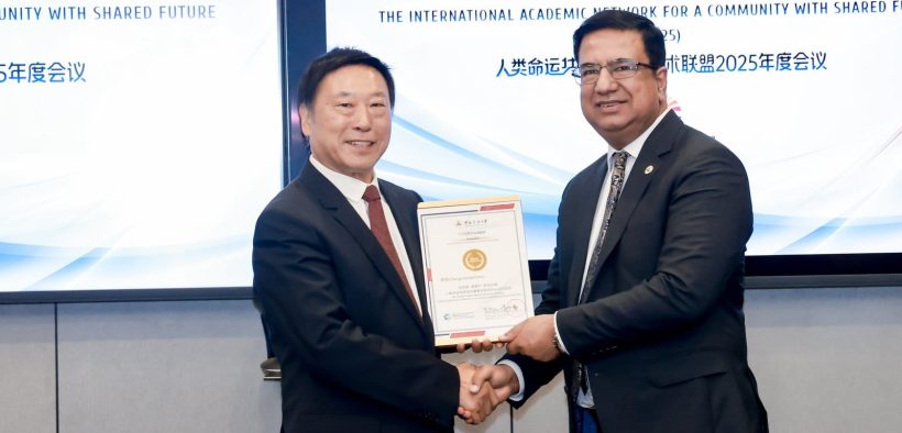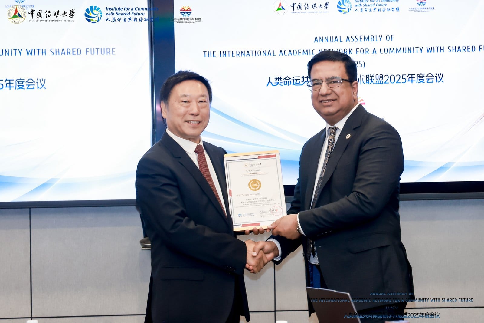 The honor was conferred during the Annual Assembly of the International Academic Network for a Community with a Shared Future, held at the Communication University of China, Beijing. The Assembly was chaired by Professor Li Huailiang, Dean of the Institute for a Community with Shared Future (ICSF), Communication University of China (CUC), Beijing, who commended Mr. Khalid Taimur Akram for his outstanding contributions and tireless efforts in enhancing global support for the concept of a shared future. This recognition not only highlighted his personal achievements but also reflected the growing appreciation of Pakistan’s intellectual engagement in international academic and policy-oriented discourse.