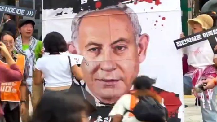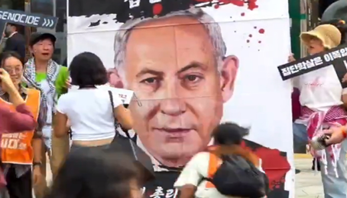 اسلام آباد (سہ پہر) دنیا بھر میں اسرائیلی جارحیت کے خلاف مظاہرے جاری ہیں وہیں جنوبی کوریا میں نیتن یاہو کی تصویر کو جوتے مارے گئے ہیں۔