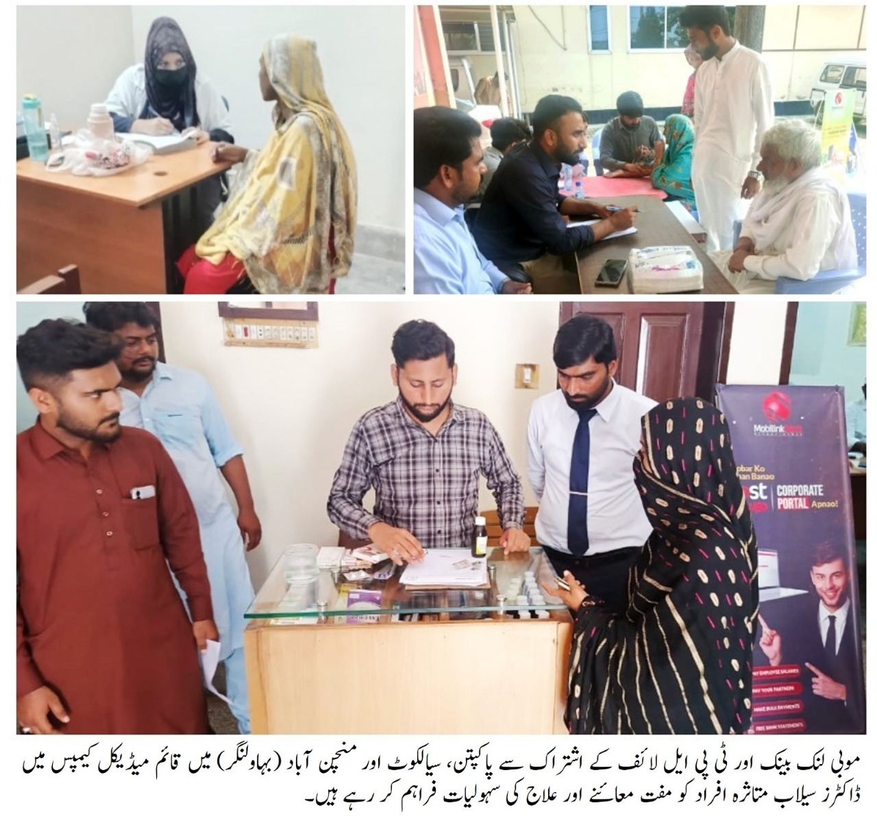 اسلام آباد (سہ پہر) موبی لنک بینک اور ٹی پی ایل لائف کا سیلاب سے متاثرہ علاقوں میں اہم طبی سہولیات کی فراہمی کے لئے میڈیکل کیمپس کا انعقاد