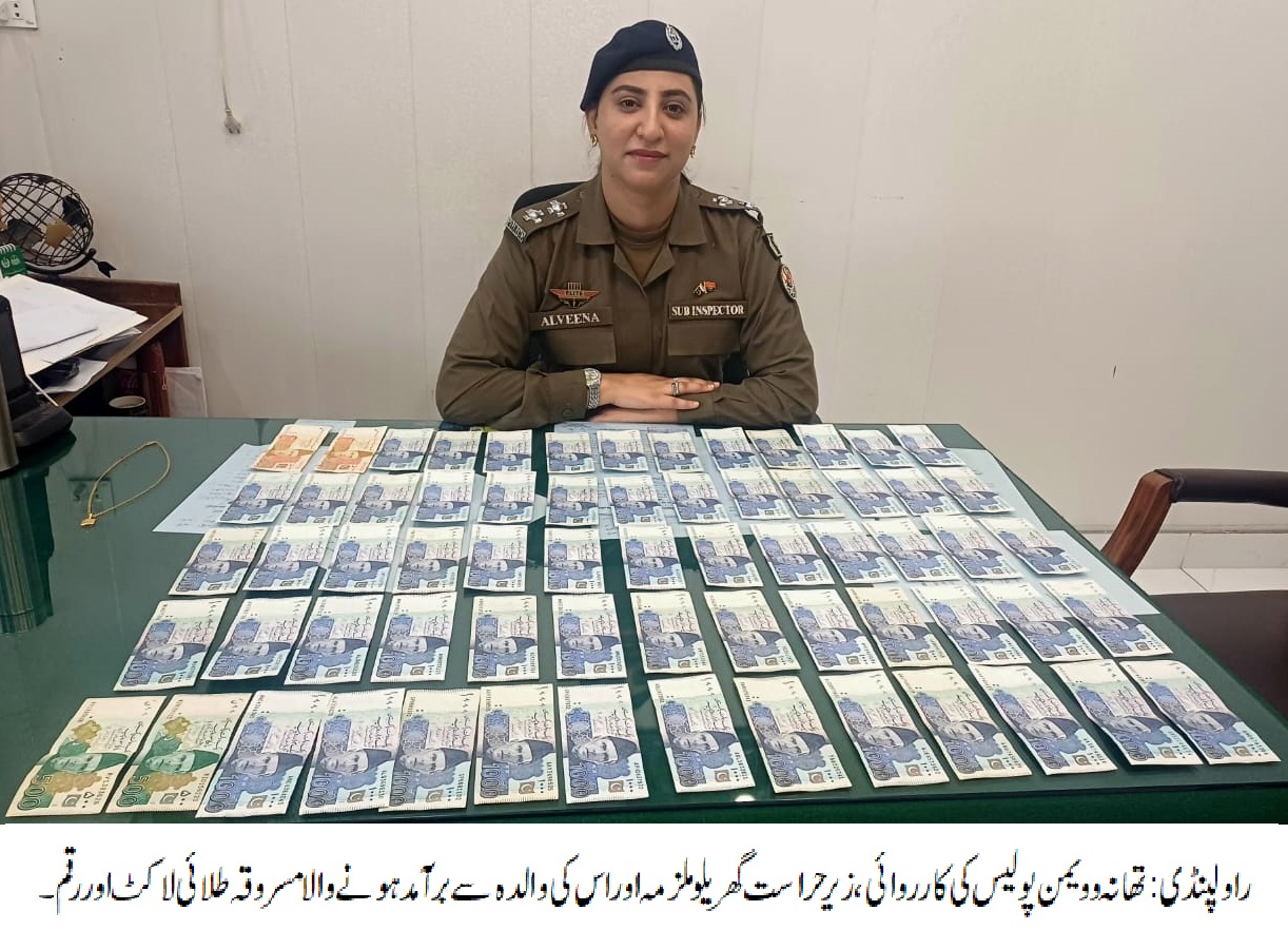 راولپنڈی (سہ پہر) ایس ایچ او تھانہ وویمن کی زیرنگرانی وویمن پولیس ٹیم کی کارروائی، گھر سے طلائی زیوارت چرانے والی گھریلو ملازمہ اپنی والدہ سمیت گرفتار، 2 لاکھ سے زائد مالیت کا طلائی لاکٹ اور زیورات کی فروخت سے حاصل ہونے والی رقم 73 ہزار روپے برآمد۔تفصیلات کے مطابق تھانہ وویمن پولیس نے کارروائی کرتے ہوئے گھر سے طلائی زیوارت چرانے والی گھریلو ملازمہ اپنی والدہ سمیت گرفتار کرلی، 2 لاکھ سے زائد مالیت کا طلائی لاکٹ اور زیورات کی فروخت سے حاصل ہونے والی رقم 73 ہزار روپے برآمدہوئی، ملزمہ نے مالک کی غیر موجودگی میں اپنے والد اور والدہ کے ساتھ مل کر طلائی زیورات چرائے تھے،تھانہ وویمن پولیس نے مقدمہ درج کرکے گھریلو ملازمہ اور اسکی والدہ کو گرفتار کر لیا،ملزمہ کے والد کو بھی جلد گرفتار کرکے مزید برآمدگی کا تحرک کیا جائے گا،ایس پی پوٹھوہار طلحہ ولی کا کہنا تھا کہ شہریوں کے جان و مال پر حملہ کرنے والے قانون کی گرفت سے نہیں بچ سکتے۔