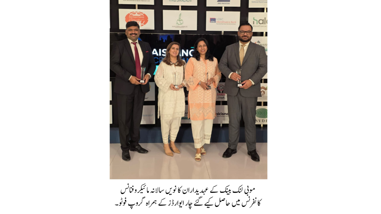 اس سال کی کانفرنس کا موضوع ‘مائیکروفنانس کی نئی بیداری’ تھا، جس میں موبی لنک بینک کو فعال قرض داروں (چھوٹے قرضے) کے لحاظ سے بہترین مائیکروفنانس بینک، ایم-والٹس (جاز کیش کے زیر تعاون) کے شعبے میں ٹاپ مائیکروفنانس بینک، جدت کے اعتبار سے ٹاپ مائیکروفنانس بینک، اور خواتین قرض داروں کے اعتبار سے لیڈنگ مائیکروفنانس بینک کے طور پر سراہا گیا۔ یہ تمام اعزازات اس بات کا ثبوت ہیں کہ خواتین کی شمولیت، ڈیجیٹل طریقوں سے چھوٹے قرضوں کے ذریعے بینک ملک میں مائیکرو کریڈٹ سہولتوں کے فروغ، ڈیجیٹل مالی خدمات کے پھیلاؤ، صنفی مساوات کے فروغ اور بینکاری کے جدید رجحانات میں قائدانہ کردار ادا کر رہا ہے۔