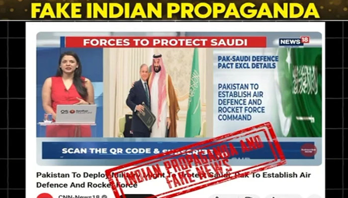 اسلام آباد (سہ پہر)(آئی پی ایس )بھارت کے گودی میڈیا کا پاک سعودی دفاعی معاہدے سے متعلق من گھڑت بیانیہ کا پول کھل گیا، وزارت اطلاعات و نشریات پاکستان نے بھارتی میڈیا کے ہتھکنڈوں کا پردہ چاک کر دیا۔بھارتی فرسٹ پوسٹ نے جھوٹا دعوی کیا کہ پاک سعودی فوجی معاہدہ کے تحت پاکستان 25 ہزار فوجی دستے سعودی عرب بھیجے گا۔