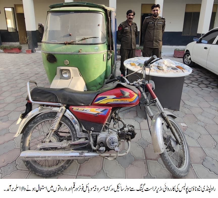 راولپنڈی (سہ پہر) ایس ایچ او نیوٹاؤن لقمان پاشا کی سربراهی میں پولیس ٹیم کی کارروائی، سٹریٹ کرائم و موٹر سائیکل چوری کے مقدمات میں ملوث 2 رکنی گینگ گرفتار، 1موٹر سائیکل،1 رکشہ، 06 مسروقہ موبائل فونز، مسروقہ رقم 1 لاکھ 85 ہزار روپے برآمد، گینگ سے وارداتوں میں استعمال ہونے والا اسلحہ بھی برآمد۔ تفصیلات کے مطابق نیوٹاؤن پولیس نے کارروائی کرتے ہوئے سٹریٹ کرائم و موٹر سائیکل چوری کے مقدمات میں ملوث 2 رکنی گینگ کو گرفتار کر لیا، زیر حراست گینگ سے 1موٹر سائیکل،1 رکشہ، 06 مسروقہ موبائل فونز، مسروقہ رقم 1 لاکھ 85 ہزار روپے برآمد ہوئی، گینگ سے وارداتوں میں استعمال ہونے والا اسلحہ بھی برآمد ہوا، نیوٹاؤن پولیس نے ٹیکنیکل و ہیومن انٹیلی جنس ذرائع بروئے کار لاتے ہوئے گینگ کو ٹریس کرکے گرفتار کیا، ایس پی راول سعد ارشد کا کہنا تھا کہ زیرحراست افراد کو ٹھوس شواہد کے ساتھ چالان عدالت کیا جائے گا، شہریوں کو انکے قیمتی اثاثہ سے محروم کرنے والے افراد قانون کی گرفت سے نہیں بچ سکتے۔