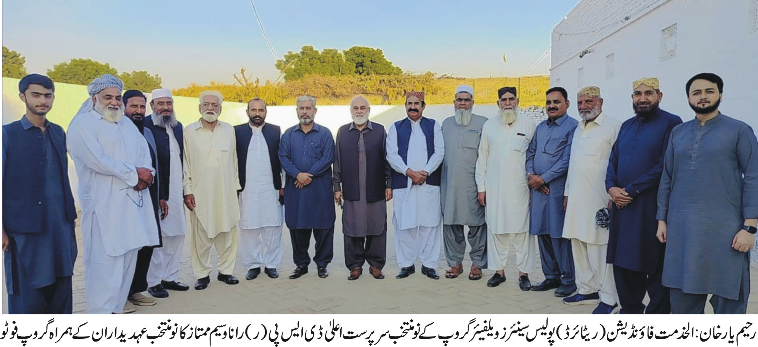 رحیم یارخان (سہ پہر) الخدمت فاؤنڈیشن (ریٹائرڈ) پولیس سینئرز ویلفیئر گروپ کی سالانہ میٹنگ کاانعقادہواجس میں گروپ کی ازسرنو تنظیم کے سلسلے میں اہم فیصلے کیے گئے۔