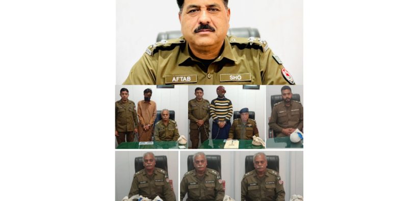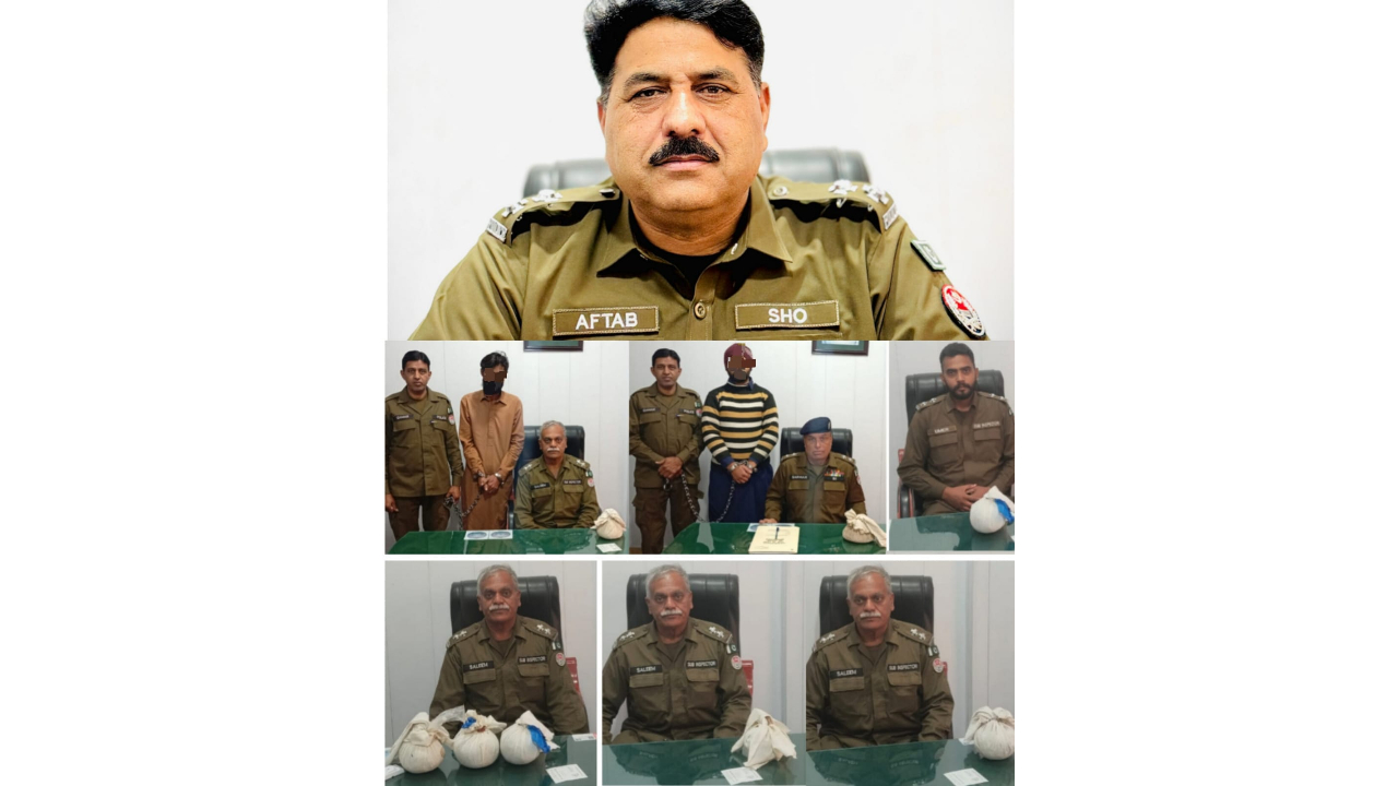 راولپنڈی (سہ پہر)(مظہر شاہ)ایس ایچ او تھانہ صدرواہ سید آفتاب شاہ کا منشیات فروشوں کیخلاف مزید گھیرا تنگ ۔ مختلف کاروائیاں 6 افراد گرفتار 9 کلو 370 گرام چرس برآمد ۔ علاقے میں جرائم پیشہ عناصر کیلئے کوئی گنجائش نہیں بلاتفریق کاروائیاں جاری رہیں گی ( ایس ایچ او تھانہ صدرواہ سید آفتاب شاہ ) تفصیلات کیمطابق سی ایم پنجاب کے ویڑن پر عملدرآمد کرتے ہوئے سی پی او راولپنڈی کے احکامات پر ایس ایچ او تھانہ صدرواہ سید آفتاب شاہ نے ہمراہ پولیس ٹیم روزانہ کی بنیاد پر جرائم پیشہ عناصر کی گرفتاری میں مزید 06 منشیات فروش گرفتار کر لئے پولیس ٹیم نے جی ٹی روڈ نزد فیصل ٹاؤن مشکوک شخص سے 1400 گرام چرس برآمد کر لی پولیس ٹیم نے دوران گشت پڑتال نواب آباد سٹاپ پر مہران گاڑی کو روکا تو دوران تلاشی شاہد نامی شخص کے قبضے سے 2220 گرام چرس برآمد کر لی کاروائیاں جاری رکھتے ہوئے پولیس ٹیم نے 1:30 بجے رات باهتر موڑ آمدہ براہمہ انٹرچینج ایک شخص کو گرفتار کر کے 1600 گرام چرس جبکہ پولیس نے 12:5 بجے رات بٹ مارکیٹ کے قریب نیو سٹی سے آتے ہوئے شخص سے 1690 گرام چرس مزید کاروائی میں 9 بجے رات ماڈل ٹاؤن فیز 2 میں ایک مشکوک شخص سے 800 گرام چرس جبکہ پولیس ٹیم نے فیصل اقبال ٹاؤن سٹاپ پر ایک شخص سے 1660گرام چرس برآمد کر لی ۔ سی پی راولپنڈی سمیت ایس پی پوٹھوہار طلحہ ولی کی ایس ایچ او صدرواہ سمیت پولیس ٹیم کو شاباش ۔