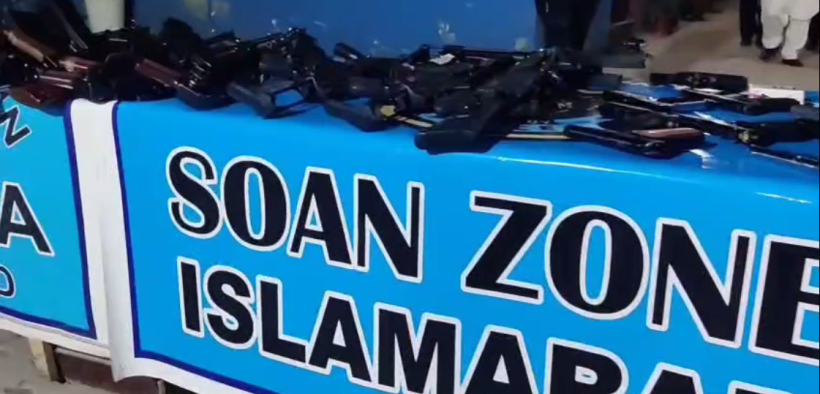 برآمد اسلحہ میں 12 بور، ایم پی فائیو، 44 بور، 223 بور اور 7MM رائفل شامل