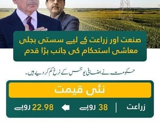 پاکستان اسلام آباد (سہ پہر) حکومتِ پاکستان نے اضافی یونٹس میں کمی زراعت کے لیے 22.98 روپے کر دی گئ۔ Sapeher Times 2025-12-12 اسلام آباد (سہ پہر) حکومتِ پاکستان نے اضافی یونٹس میں کمی زراعت کے لیے 22.98 روپے کر دی گئ۔ وفاقی وزیر توانائی پاور ڈویژن سردار اویس احمد خان لغاری کی معیشت کے استحکام کی جانب اہم قدم