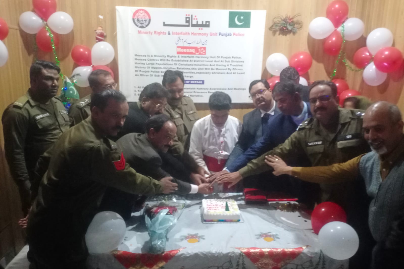 میثاق سنٹر کے اغراضِ ومقاصد بیان کرتے ہوئے راجہ طاہر نے کہا کہ میثاق سنٹر بین المذاہب آہنگی کے فروغ اور اقلیتوں کے حقوق کے تحفظ میں اہم کردارادا کرے گا،سنٹرمیں مذہبی اورسماجی مسائل کو حل کیا جائے گا،میثاق سنٹر مذہبی ڈائیلاگ سنٹر کا کردار ادا کرے گا۔ تقریب کے میزبان انچارج میثاق سنٹر سب انپسکٹر عرفان گل, انچارج میثاق سنٹر کینٹ سلیم مسیح ,بشب طارق جان سیاسی سماجی رہنما محبوب عالم ,کامران رضا,سرمد,پاسٹر جانسن و دیگر شرکا کے ہمراہ انہوں نے کرسمس کیک کاٹا اور تمام شرکا کو کرسمس کی مبارک باد دی