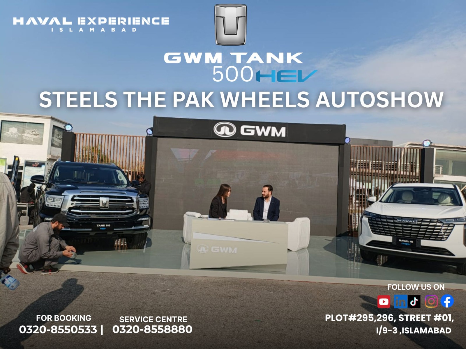Flagship NEV Lineup: The company showcased what was billed as Pakistan’s largest New Energy Vehicle (NEV) lineup, including the Haval H6 PHEV and the premium Tank 500.