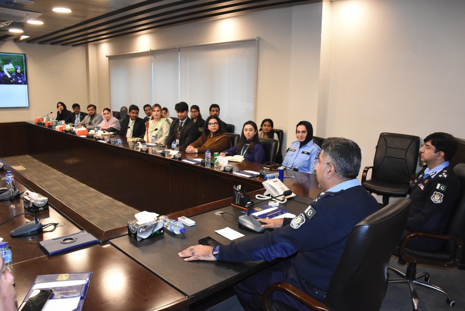 ڈی آئی جی محمد جواد طارق اور ڈی آئی جی ہیڈکوارٹرز ملک جمیل ظفر نے وفد کو اسلام آباد پولیس کے عوام کی سہولت، بہتر سروس ڈیلیوری اور جدید پولیسنگ کے نظام کی اہمیت و افادیت سے بھی آگاہ کیا۔ آئی جی اسلام آباد، ڈی آئی جی اسلام آباد اور ایس پی ہیڈکوارٹرز پری گل ترین نے وفد کو یاد گاری شیلڈز پیش کیں