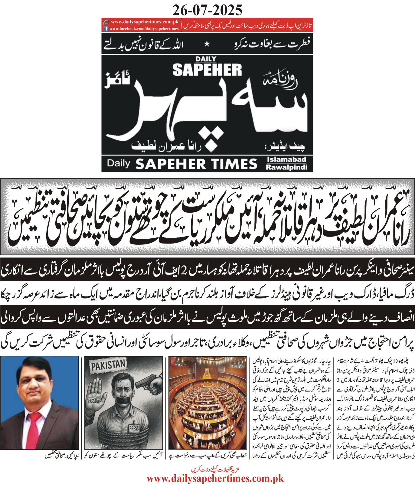 Islamabad (Sapeher Times) : Chairman CDA Unwavering in Tackling Land and Timber MafiasISLAMABAD: Chairman CDA, Noorul Amin Mengal, has demonstrated unwavering determination in tackling the formidable challenges posed by land and timber mafias in Islamabad.