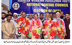 اسلام آباد (سہ پہر) ٹریڈیونینز میں جمہوریت کو فروغ دینا میری اولین ترجیح ہے۔ چوہدری محمد یسین چوہدری محمد یٰسین کے ویژن کے مطابق مزدوروں کے حقوق کے تحفظ کو یقینی بنائیں گے۔ نومنتخب عہدیداران پاکستان ورکرز فیڈریشن کی نیشنل جنرل کونسل کا اجلا س زیر صدارت محمد نسیم راؤ اسلام آباد کے مقامی ہوٹل […]