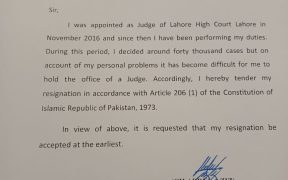 اصغر علی مبار لاہور (سہ پہر) لاہور ہائی کورٹ کے جسٹس چوہدری عبدالعزیز نے ذاتی وجوہات کی بنا پر استعفیٰ دے دیا۔ لاہور ہائی کورٹ کی ویب سائٹ کے مطابق جسٹس چوہدری عبدالعزیز کی تاریخ پیدائش 9 ستمبر 1971 ہے، وہ 26 نومبر 2016 کو لاہور ہائی کورٹ میں ایڈیشنل جج کے طور پر شامل […]